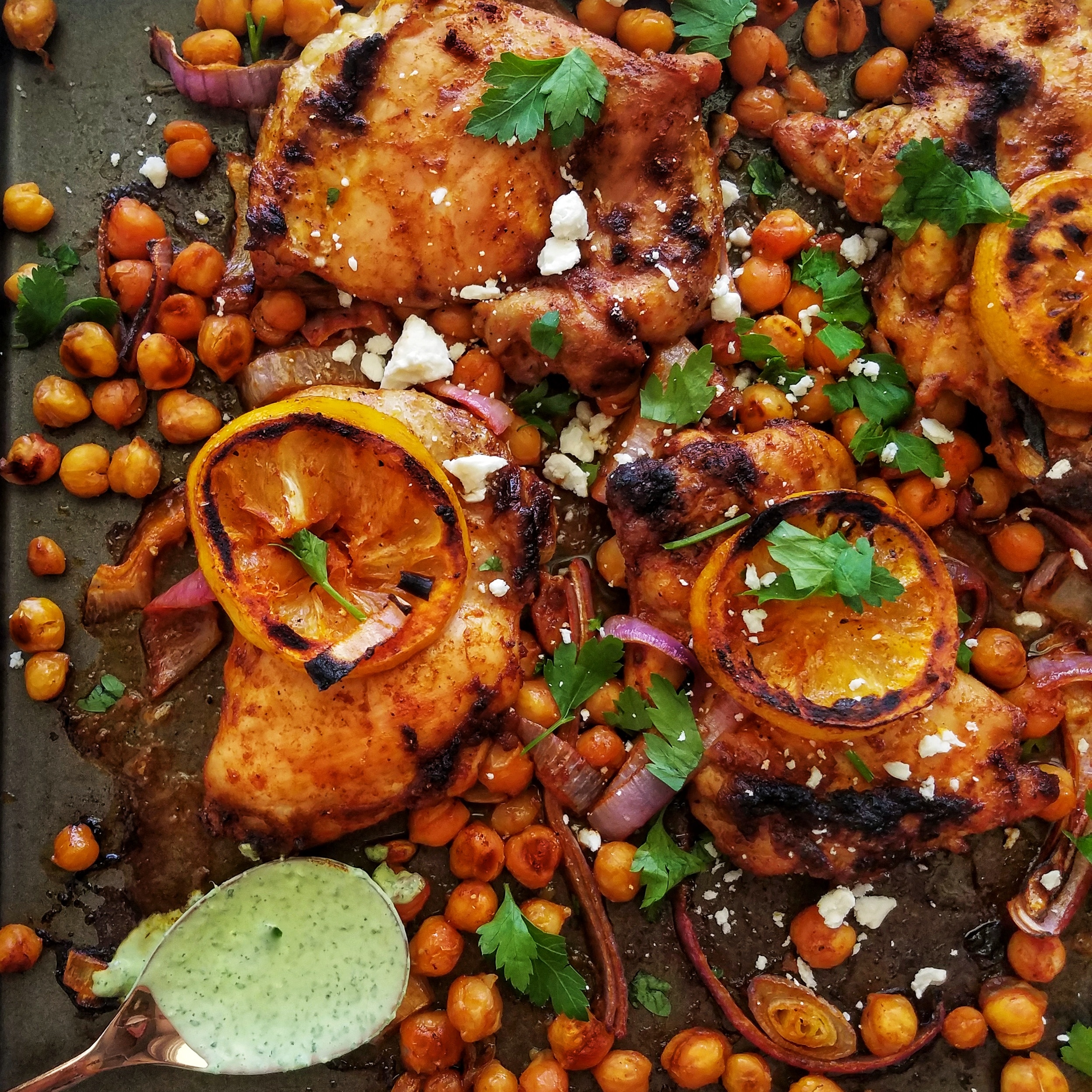 Sheet Pan Chicken Thighs With Chickpeas Mandy Olive